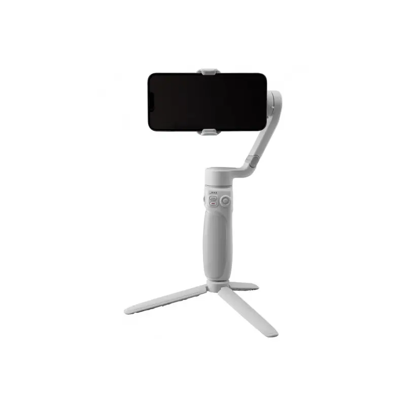 Estabilizador de tres ejes para teléfonos móviles con un práctico y ágil mecanismo de plegado. Pesa solo 370 gramos y tiene unas dimensiones de 181,7 x 107,7 x 56,3 milímetros cuando está plegado