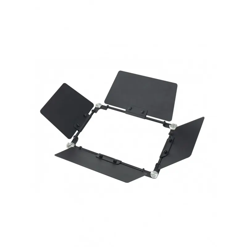 Estos Barndoors negros de Nanlite son compatibles con la lámpara LED MixPad II 11C RGBWW. Cada una de las cuatro hojas de metal se puede ajustar de forma independiente para dar forma a la dirección y propagación de la luz o para bloquear el derrame de luz no deseado. Este accesorio se monta de manera segura en su luz usando los cuatro tornillos de 1/4 «-20 incluidos.