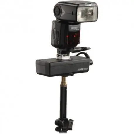 estándar. Móntelo debajo de cámaras  o soportes. La Turbo Blade utiliza baterías recargables de níquel metal hidruro de última generación para asegurar un resultado excelente y muy consistente. (No tienen efecto memoria)  La batería Turbo Blade dispone de unos led indicadores que muestran la capacidad de la carga de la batería en cada momento, de manera que nunca le pillará desprevenido.
