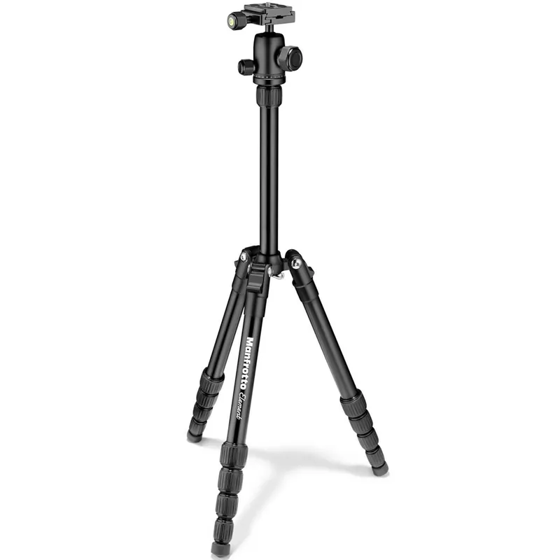 El trípode Element Traveler Small black de Manfrotto es la elección perfecta para los fotógrafos entusiastas que buscan un trípode de viaje extremadamente pequeño pero que sea robusto, ligero y fácil de transportar. El Manfrotto Element Traveler Small es un trípode hecho en aleación de aluminio, compacto, robusto, asequible y muy versátil. Se extiende hasta una altura de 143cm y solo 32cm cuando esta plegado. Un mecanismo telescópico extiende la columna hasta una altura de 143cm, consiguiendo un balance perfecto entre la portabilidad y el funcionamiento. Las patas del trípode se separan de forma independiente y cuentan con tres ángulos de apertura que permiten un posicionamiento versátil en casi cualquier superficie. El mecanismo de bloqueo twist-lock permite a los fotógrafos encontrar la posición perfecta con movimientos suaves y rápidos, dándoles la libertad de enfocar sus fotos. Dado que la ligereza en un trípode de viaje es fundamental, los fotógrafos pueden confiar en el gancho de muelle situado en la parte inferior de la columna central para agregar peso adicional para una estabilidad adicional cuando sea necesario. Manfrotto Element small es ideal para cámaras CSC y soporta fácilmente cargas de hasta 4kg. La rótula de bola de aluminio se ha diseñado para obtener los movimientos más suaves a la hora de encuadrar y sujeta el equipo exactamente donde usted lo necesita. Si te interesas por la fotografía de paisaje, te encantará el bloqueo panorámico de la rótula que permite a los fotógrafos tomar fotos panorámicas increíbles de forma fácil y precisa gracias a su índice de panorámica de 360 °. La rótula de bola monta una placa de liberación rápida de tipo Arca con un tornillo de cámara de 1/4 »-20 en la parte superior y que garantiza que el equipo esté equilibrado al usar objetivos zoom. El Manfrotto Element Small viene en cuatro colores (Negro, Azul, Gris y Rojo), en su propia bolsa acolchada para facilitar su almacenamiento y transporte.