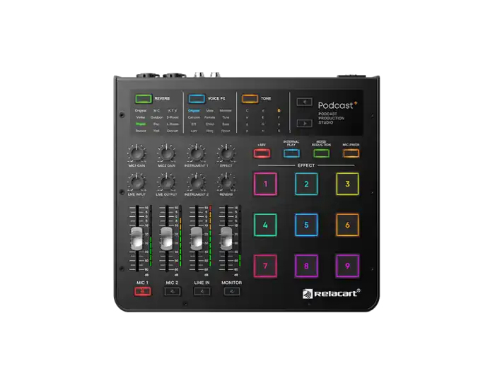 Podcast+ es un estudio de producción de podcasts especialmente diseñado para la aplicación de transmisión en vivo, que recopila las funciones de la aplicación en vivo, como la mezcla, los efectos de sonido y los efectos. Puede conectar 4 teléfonos móviles o PC al mismo tiempo tiempo para transmitir a equipos de transmisión en vivo a través de audio digital. Su diseño es liviano y fácil de transportar, el diseño del panel es simple y la distinción de funciones es clara y fácil de entender. 4 puertos TYPE-C brindan una función de carga