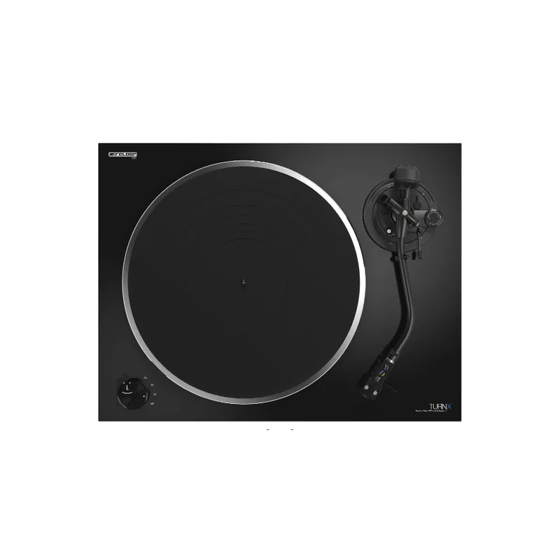 El plato fundido a presión mecanizado con precisión del Turn X pesa 2,1 kilogramos, mide 332 milímetros de diámetro y 22,5 milímetros de grosor, y está sostenido por un sólido bloque de aluminio para una rotación uniforme e ininterrumpida. Un revestimiento de goma adicional funciona para proporcionar un aislamiento adicional para el diseño hundido. Su brazo en forma de S con equilibrio estático incluye un peso ajustable y un sistema antipatinaje, mientras que el ángulo de seguimiento vertical (VTA) se puede modificar para afectar el acimut del cartucho, lo que le permite marcar el sistema de reproducción perfecto. La potencia de conmutación incorporada contribuye a su aislamiento de ruido ultrabajo. Su factor de forma aerodinámico incluye un diseño intuitivo de 1 perilla, con el selector de velocidad que se duplica como un botón de inicio/parada para un tocadiscos que se ve tan elegante como suena.