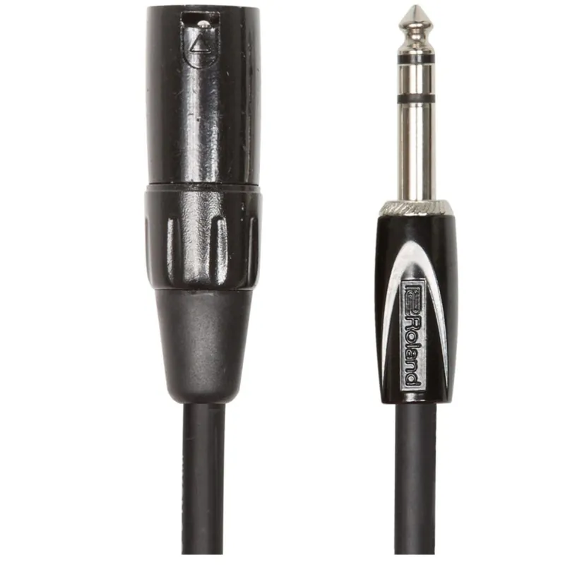 Cable profesional de 3 metros de XLR macho A Jack de 1/4 fabricado por Roland con hilo de cobre libre de oxígeno multihebra y con blindaje en espiral de alta densidad.