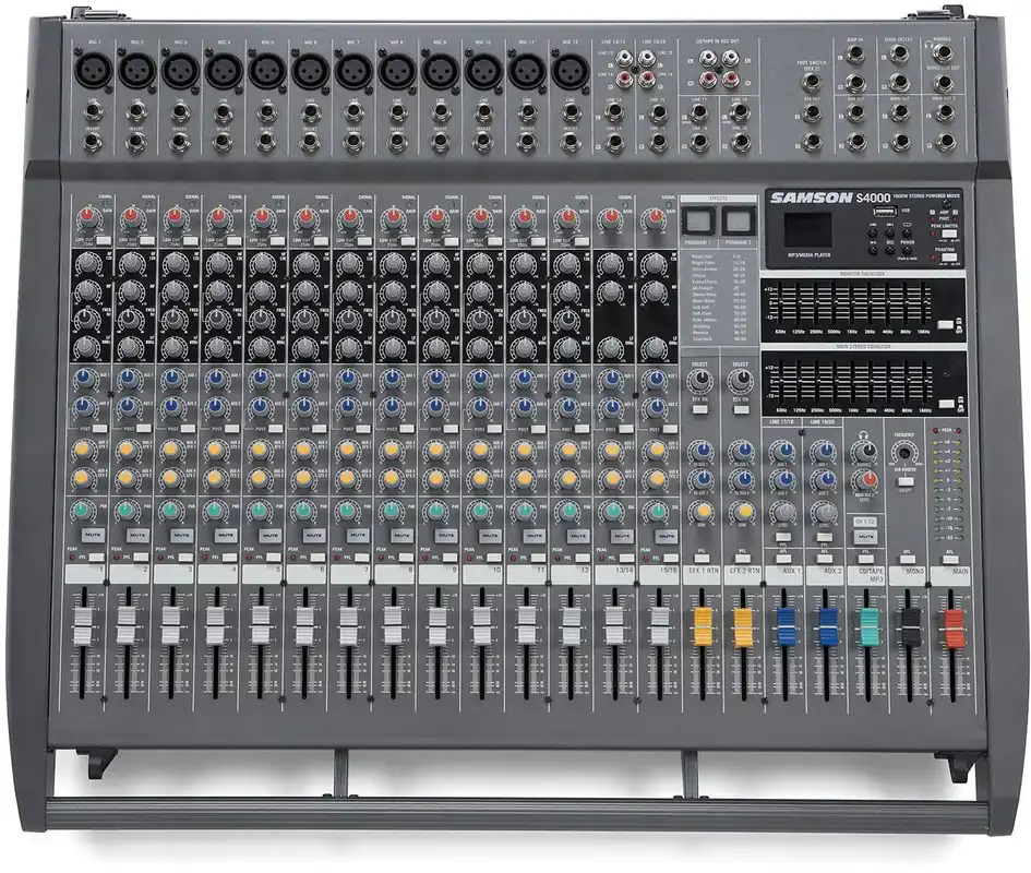 - Mesa de mezclas autoamplificada 2x 500W a 4 Ohm.