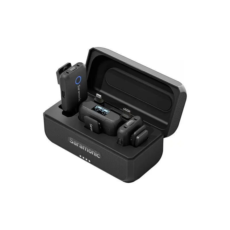 Disfruta de audio inalámbrico manos libres y sin complicaciones en tus videos y contenido con el Saramonic Blink 500 B2+, un sistema de micrófono inalámbrico ultracompacto y extremadamente fácil de usar que ofrece una solución integral y económica para grabar a dos personas con cámaras, computadoras y dispositivos móviles.