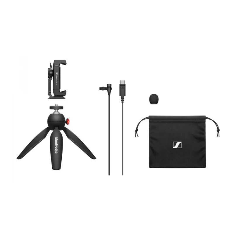 El SENNHEISER XS LAV USB-C MOBILE KIT está diseñado para vloggers y creadores de contenido en movimiento. Este kit incluye el micrófono lavalier XS Lav USB-C de SENNHEISER, el Smartphone Clamp y el Mini Trípode PIXI de Manfrotto. El XS Lav cuenta con un micrófono lavalier omnidireccional con un cable de 2 metros (6.6 pies), mientras que el Smartphone Clamp permite la orientación tanto en retrato como en paisaje. El Manfrotto PIXI cuenta con una cabeza de bola con bloqueo que se puede ajustar con un solo botón, lo que le permite configurar su encuadre con facilidad.