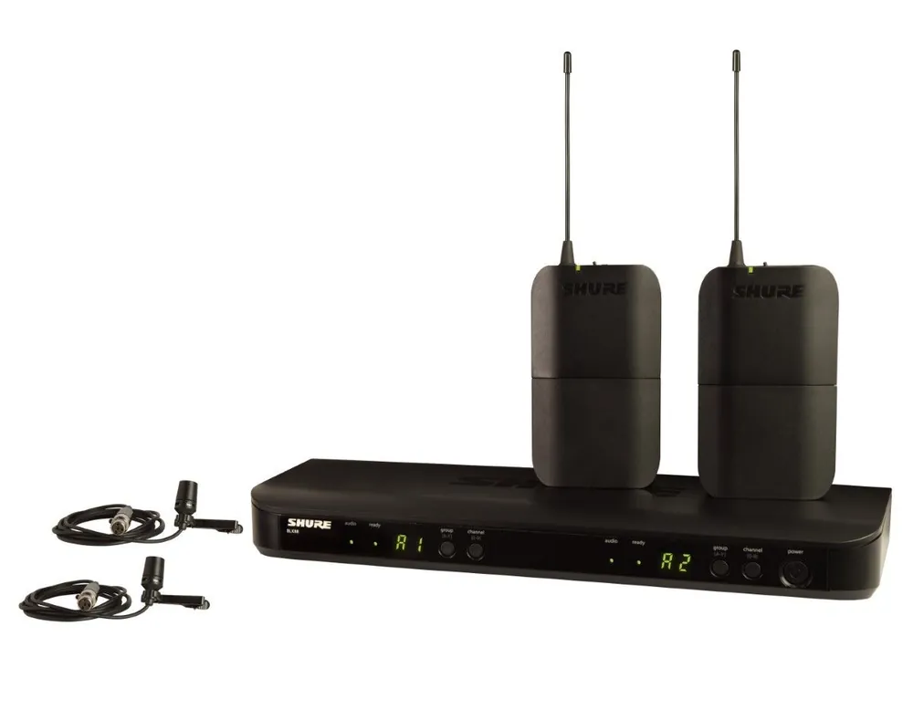 - Sistema inalámbrico dual de solapa PRESENTER. Hasta 12 frecuencias compatibles, compuesto por receptor dual BLX88 y 2 emisores de petaca BLX1 con cápsulas de solapa CVL-B/C.