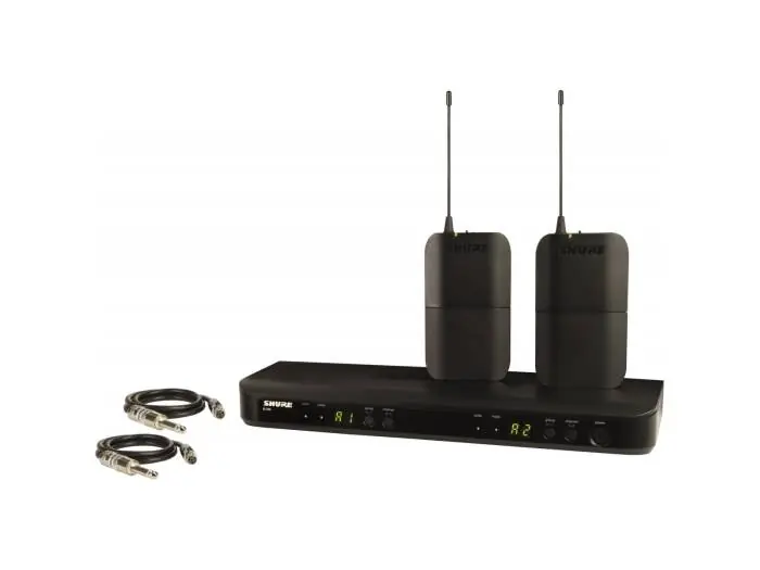 Sistema inalámbrico dual de petaca GUITAR PG. Hasta 12 frecuencias compatibles, compuesto por receptor dual BLX88 y 2 emisores de petaca BLX1 con 2 cables de instrumento WA302. El transmisor bodypack BLX1 dispone de un diseño robusto y ligero. Ergonómicamente diseñado para llevarlo cómodamente en la mano, con control de ganancia ajustable. El transmisor bodypack BLX1 se incluye en los sistemas inalámbricos analógicos BLX y BLX-R. Con él puedes conseguir hasta 14 horas de uso continuo con 2 pilas AA (incluidas) y un rango operativo de 100 m.