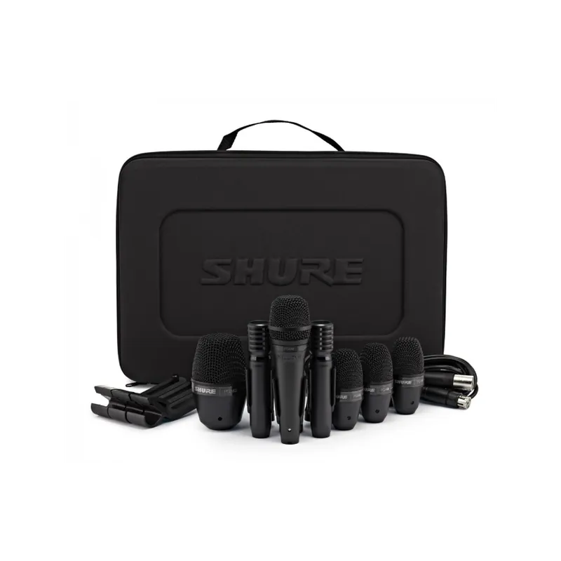 Descubre los sonidos de los tambores profesionales. El Shure PGA Drum Kit 7 te da todo lo que necesitas para ponerle un micrófono a toda una batería. Desde los profundos bajos de la patada, hasta los detallados altos de los platillos.