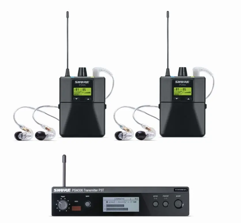 El Shure PSM 300 Twin Pack PRO incluye dos receptores de bolsillo inalámbricos PSM 300, dos pares de auriculares con microcontrolador dinámico SE215 y el transmisor inalámbrico PSM 300: la solución de monitoreo ideal para hasta dos artistas.
