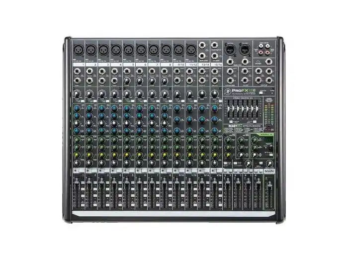 La Mackie Pro FX16 v2 es una mesa de mezclas profesional de 16 canales con 10 previos de micrófono Mackie VITA Clase-A y 4 buses. Incorpora también un procesador digital de efectos con 16 efectos, ecualizador gráfico de 7 bandas e interfaz usb para conectar tu ordenador. La Mackie Pro FX16 v2 es ideal para pequeñas sonorizaciones profesionales o para estudio, ya que ofrece una gran calidad de sonido.