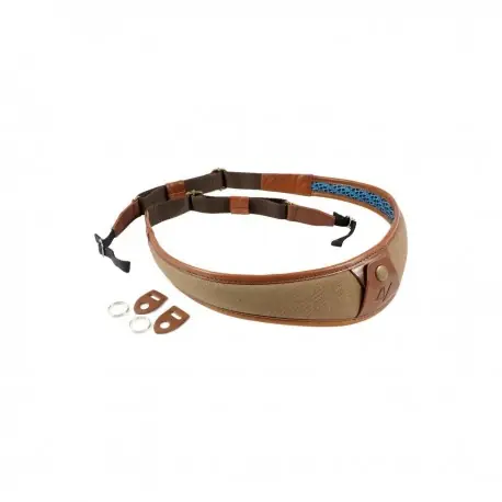 El cojín se hace de la lona del algodón de la calidad superior contorneada maravillosamente con el cuero curtido vegetal de Toscana. El revestimiento está hecho de gamuza suave de 4V. ALA es la correa ideal para complementar cualquier equipo fotográfico de estilo clásico.