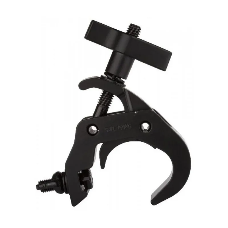La BRITEQ FAST CLAMP BLACK V2 ABRAZADERA RAPIDA es la solución definitiva en abrazaderas de montaje. Su mecanismo FAST CLAMP la hace perfecta para empresas de alquiler y montaje, asegurando una instalación rápida y segura. Diseñada para tubos de entre 48 y 51 mm, esta abrazadera es ideal para trusses de aluminio, sin causar daños. Viene con 2 juegos de tornillos y tuercas de mariposa (M10 + M12) para una versatilidad adicional en la instalación.