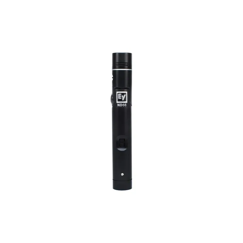 El ND66 es un micrófono de instrumento de condensador de diafragma pequeño robusto y de alto rendimiento. Su elemento condensador de diafragma pequeño auto-polarizado responde vívidamente a la compleja naturaleza dinámica de los instrumentos de percusión y de cuerda, y ofrece un sonido limpio, nítido y detallado. Con el cabezal giratorio de bloqueo exclusivo del ND66, logre la ubicación ideal del micrófono en prácticamente cualquier situación con solo presionar un botón, girar el cabezal a su posición y luego soltar el botón para bloquear la posición del cabezal.