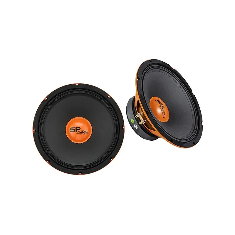 Altavoz medio/grave de 6.5″ SP Audio SP 10CM es capaz de soportar una potencia de hasta 400 W, está fabricado con un cono de papel prensado y fibra de vidrio con una suspensión M Roll, una bobina de 2″ y un imán de ferrita.