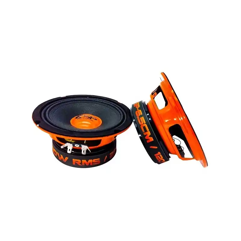 Altavoz medio/grave de 6.5″ SP Audio SP 6.5CM es capaz de soportar una potencia de hasta 250 W, está fabricado con un cono de papel prensado y fibra de vidrio con una suspensión M Roll, una bobina de 1.2″ y un imán de ferrita.