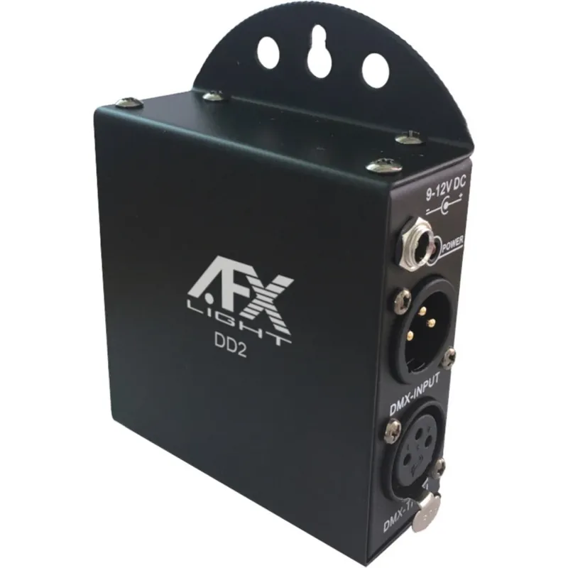 Distribuidor DMX que permite doblar la señal DMX de entrada para poder enviarla a dos cadenas diferentes.