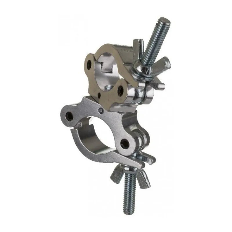 La BRITEQ SWIVEL CLAMP 302-V2 ABRAZADERA DOBLE GIRATORIO 38-51MM es una abrazadera de montaje doble que permite una rotación completa de 360°, ideal para conectar dos trusses de manera eficiente. Con una capacidad de carga de trabajo segura (SWL) de 300 kg, es adecuada para tubos de 38 a 51 mm. Certificada por TÜV, esta abrazadera asegura una instalación segura y estable en cualquier estructura de soporte.