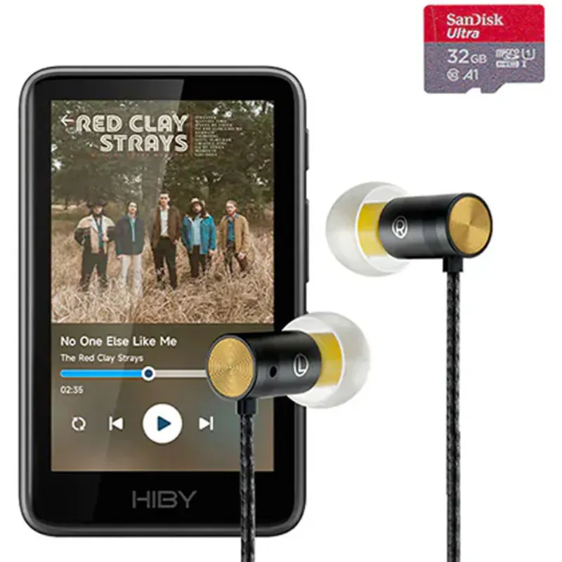 - Accesorios incluidos: auriculares in-ear HiBy Yves, microSD 32 GB, funda de microfibra, almohadillas S/M/L