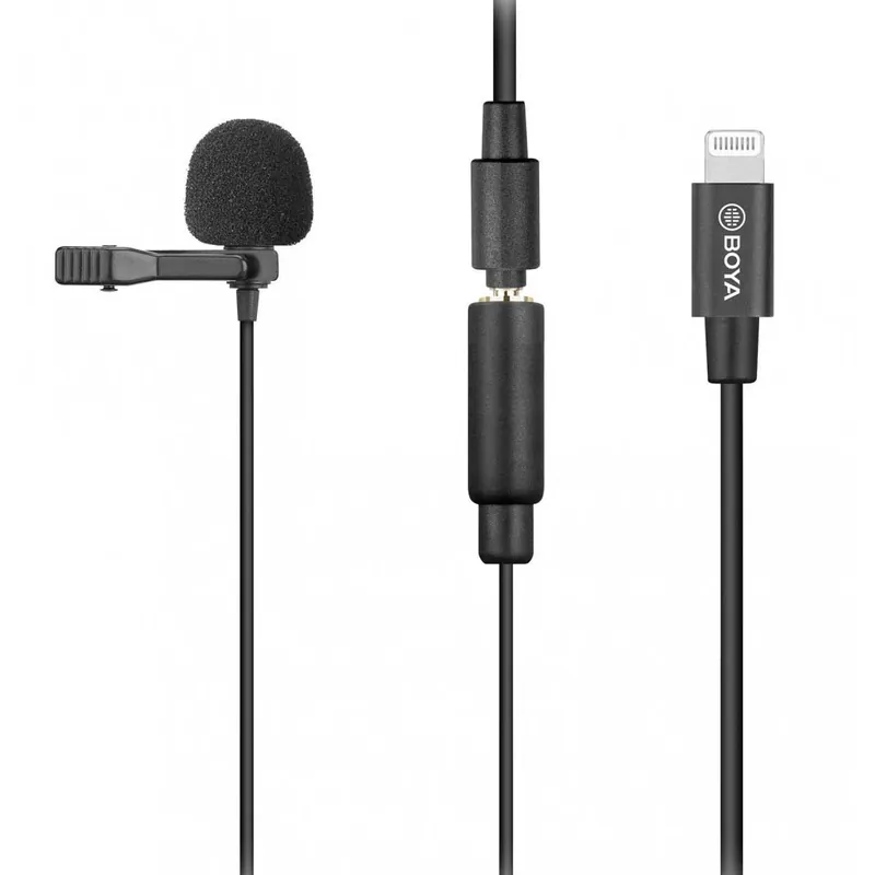 El micrófono de solapa con clip BOYA BY-M2 ayuda a capturar un sonido claro y de alta calidad directamente en todo tipo de dispositivos iOS a través del puerto Lightning.