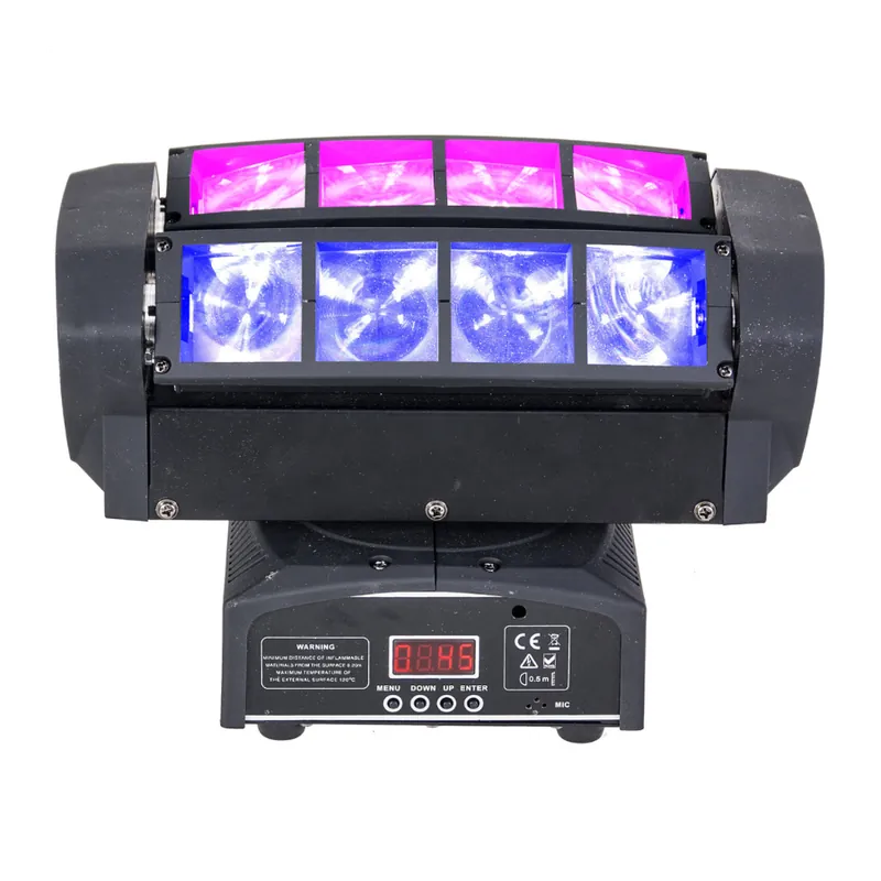 - 8 LED CREE RGBW de 10W con una vida útil prolongada de más de 50.000 horas, asegurando un rendimiento duradero y confiable en cada evento.