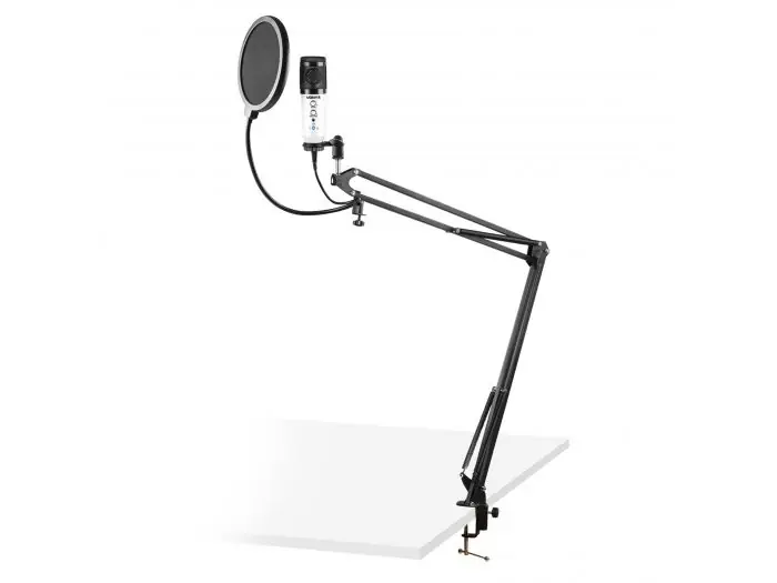 El conjunto CMS320 contiene un micrófono de condensador de alto rendimiento junto con un soporte de brazo de tijera de suspensión ajustable y un filtro antipop en cuello de cisne. El micrófono de estudio está equipado con un conector para auriculares de 3,5 mm que le permite escuchar lo que está grabando en tiempo real, y los controles de volumen y eco le brindan la capacidad de realizar la grabación perfecta. Normalmente utilizado para cantar, jugar, chatear, web, grabación personal, podcasting, video locuciones, conferencias de Skype y muchas otras aplicaciones. Simplemente conéctelo directamente a un PC u ordenador portátil con el cable USB incluido y estará listo para usar en plug and play.