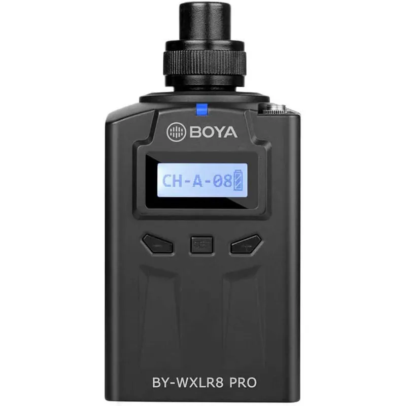 El BOYA BY-WXLR8 PRO es un transmisor inalámbrico enchufable para usar con micrófonos de mano. Use esto con los receptores inalámbricos BOYA RX8 Pro y SP-RX8 Pro.