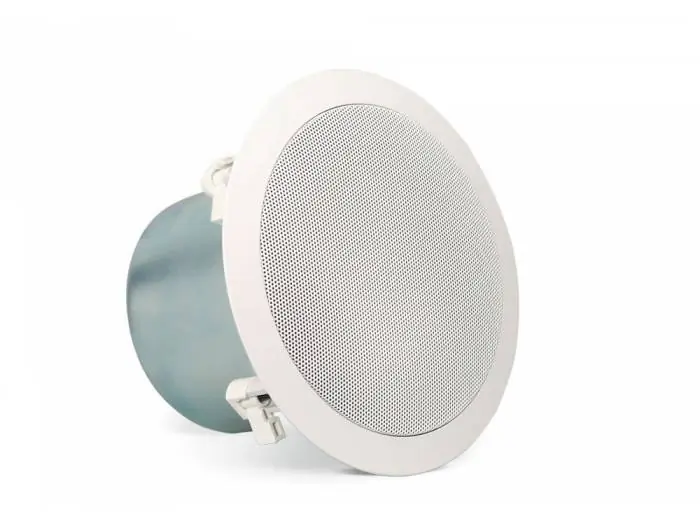 IC 600 T es un altavoz de techo compuesto de woofer de 6.5″, que puede trabajar en instalaciones de baja impedancia soportando una potencia de 6 W @ 8 Ohm, y en instalaciones de línea de y 70/100 voltios, disponiendo para ello de un selecto de potencias (6/3/1.5 W). Está construido con carcasa metálica y rejilla de plástico ABS, y dispone de anclajes rotativos.
