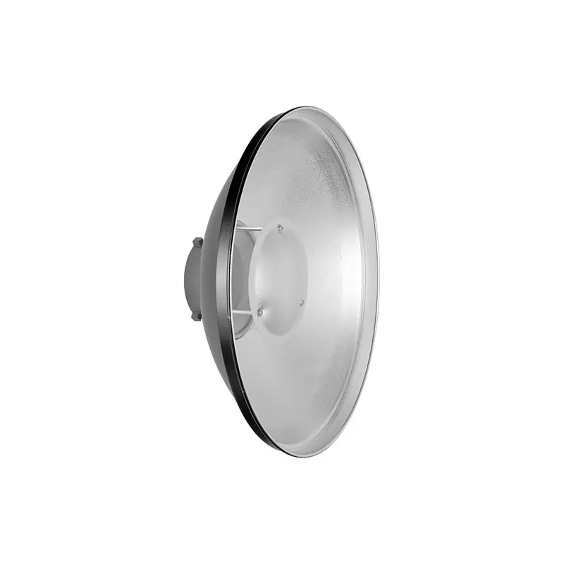 Uno de los favoritos de los fotógrafos de moda y retratos, el Beauty Dish Reflector plateado de 16.5 «de Godox hace rebotar la luz en un deflector ubicado en el centro y se dirige para llenar el interior del reflector plateado. El resultado es un aspecto suave característico pero con un borde de nitidez (ideal para el cabello y el maquillaje), que no puedes conseguir con sombrillas y cajas de luz. Para aquellos que quieren un aspecto más suave, se incluye un calcetín de difusión. El interior plateado agrega un poco de contraste y fuerza y aumenta el rango de proyección de la luz. Una ventaja adicional son los reflectores de aspecto natural que aparecen en los ojos del sujeto. Los accesorios opcionales incluyen una rejilla en forma de panal para hacer un túnel y dirigir la salida de luz.