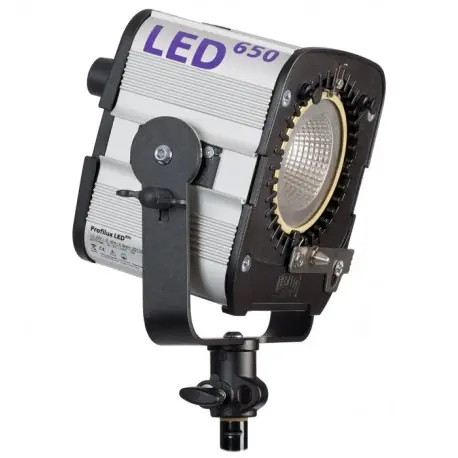 Foco HEDLER Profilux LED650 de alta gama con ángulo de iluminación de 70°. Su reflector interno tipo flood produce una luz dura y brillante con un índice de reproducción cromática superior a 96 CRI, que asegura una reproducción de colores saturados y fieles a la escena. Una luz continua excepcional para videógrafos.