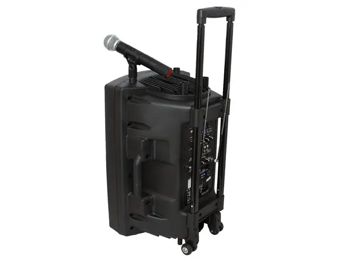 Además de su calidad excepcional en su categoría, este sistema portátil de sonorización presenta diferentes ventajas, tales como: -Autonomía, gracias a su batería recargable incluida y su doble alimentación 220V y 12V, -Polivalencia con su trolley y sus ruedas -Libertad de movimientos gracias a sus 2 micrófonos inalámbricos UHF de calidad profesional, -Mando a distancia, -Multi fuente con numerosas entradas/salidas y sus puertos USB/SD/MMC-MP3 con un gran display retro iluminado ID3 e informaciones TAG. Además de otras ventajas a descubrir…