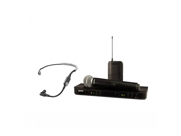 BLX1288/SM35 Sistema inalámbrico combo, con micrófono de diadema SM35 y micrófono de mano SM58.El SM35 es un micrófono de diadema de tipo condensador de Shure que ofrece a los multiinstrumentistas la libertad de expresarse en el escenario sin tener que sacrificar la calidad de sonido. El SM58 es el micrófono vocal estándar de la industria específicamente diseñado para reproducir la voz de manera cálida y nítida. Con transmisión inalámbrica analógica dual.