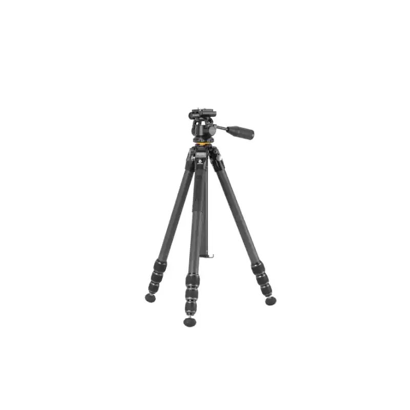 El VEO 5 264CO28 es un trípode de fibra de carbono con 4 secciones, de 26mm de diámetro máximo. Las patas pueden abrirse en 3 ángulos de apertura distintos 23º-50º-80º mediante un botón silencioso, para que pueda usarse en diferentes posiciones y ajustar el nivel ante cualquier irregularidad del terreno en caso de ser necesario.
