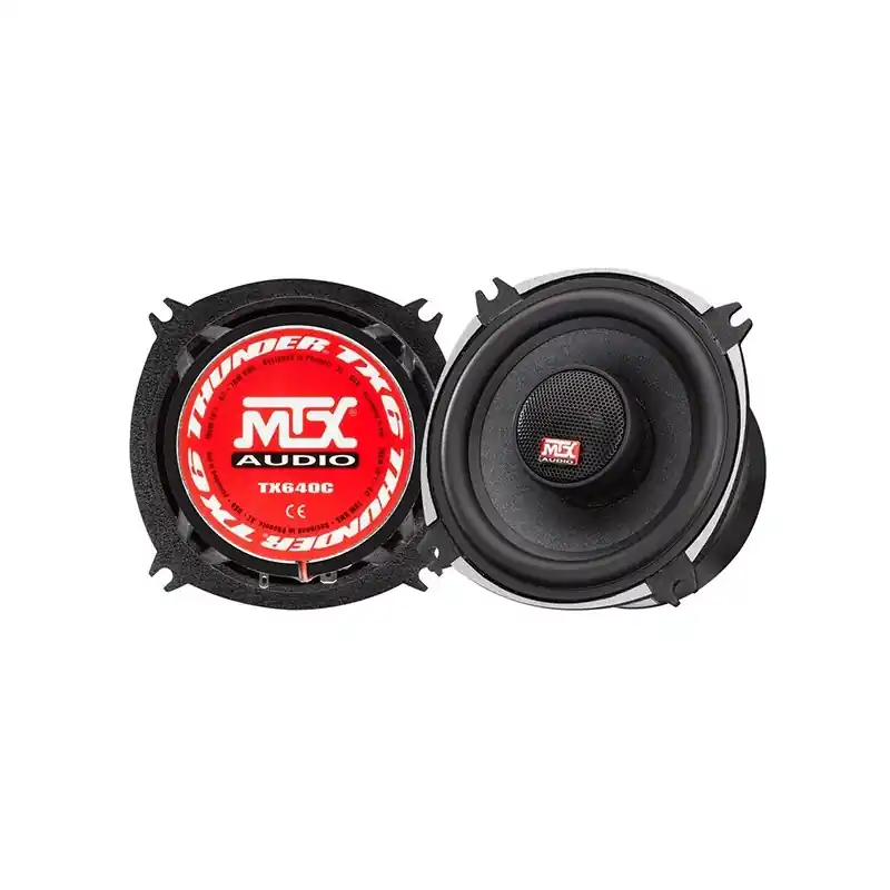 El sistema de altavoces coaxiales de 2 vías MTX Audio TX 640C de 4″ de la serie Thunder manejan una potencia de 280 W. Están fabricados con chasis de aluminio MTX para una rigidez optima, la ojiva de fase de aluminio es la encargada de neutralizar las ondas estacionarias, membrana de papel para mayor musicalidad, imán de grandes dimensiones y bobina de voz TSV TIL de grandes dimensiones. El tweeter de 22 mm con cúpula de seda genera un sonido suave y dinámico.