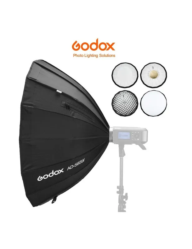 Ventana parabólica con montura Godox especialmente diseñada para utilizarla con el flash Godox AD400Pro, AD400ProII, AD300Pro y AD300ProII.