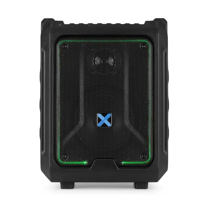 El VONYX 170.137 SPLASH300 SISTEMA PORTÁTIL DE SONIDO RESISTENTE A LA INTEMPERIE es un sistema de sonido todo en uno resistente a la intemperie, diseñado para llevar la música a todas tus aventuras. Portátil e inalámbrico, este sistema trolley es ideal para fiestas, actuaciones y megafonía en exteriores. Con opciones de entrada como USB y AUX, reproduce música desde diversos dispositivos, mientras que la transmisión inalámbrica BT 5.0 permite la conexión fácil de smartphones, tabletas y portátiles. Su batería recargable, mango retráctil y ruedas resistentes lo convierten en la elección perfecta para actividades al aire libre e interiores, desde entretenimiento en el hogar hasta karaoke, escuelas, seminarios y fitness. Experimenta un sonido potente con el sistema de refuerzo de bajos y añade un toque de estilo con el anillo LED que cambia de color en el frontal, llevando tu fiesta o evento al siguiente nivel.